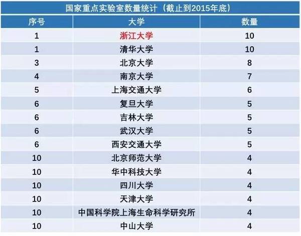下面看看各高校国家重点实验室前十名的数量统计(数据来源于科技部报告;共建的国家重点实验室按各共建单位各有一个进行统计;科技部发布的报告中国家重点实验室不包括省部共建国家重点实验室和企业国家重点实验室):